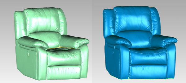 整個過程快速便捷地獲取皮沙發(fā)的三維數(shù)據(jù),將沙發(fā)真實還原,展現(xiàn)在PC端、移動端,使顧家家居的客戶能更方便、更全面地在線上就能了解其產(chǎn)品細節(jié),為顧家家居實現(xiàn)AR購物技術(shù)上邁出了第一步。更能迎合科技潮流,用三維展示技術(shù)讓消費者更加全面得了解產(chǎn)品特點和細節(jié),同時通過三維展示技術(shù)提高家具的宣傳質(zhì)量和效果。而三維展示必不可少的前提就是要有三維數(shù)據(jù)。傳統(tǒng)的方法是通過人工三維建模獲得與產(chǎn)品外觀相近的三維模型。這種方法不僅耗時,而且模型的真實度也不高,特別是一些細節(jié),靠人工建模雕刻很難復現(xiàn)。文程數(shù)碼科技能夠提供一種更加方便快捷,模型的細節(jié)也更加真實的獲取三維模型的方法。不僅提高了獲取三維模型的效率,還提高三維模型的質(zhì)量,通過后期處理獲得清晰逼真的三維模型,完美解決家居的問題。